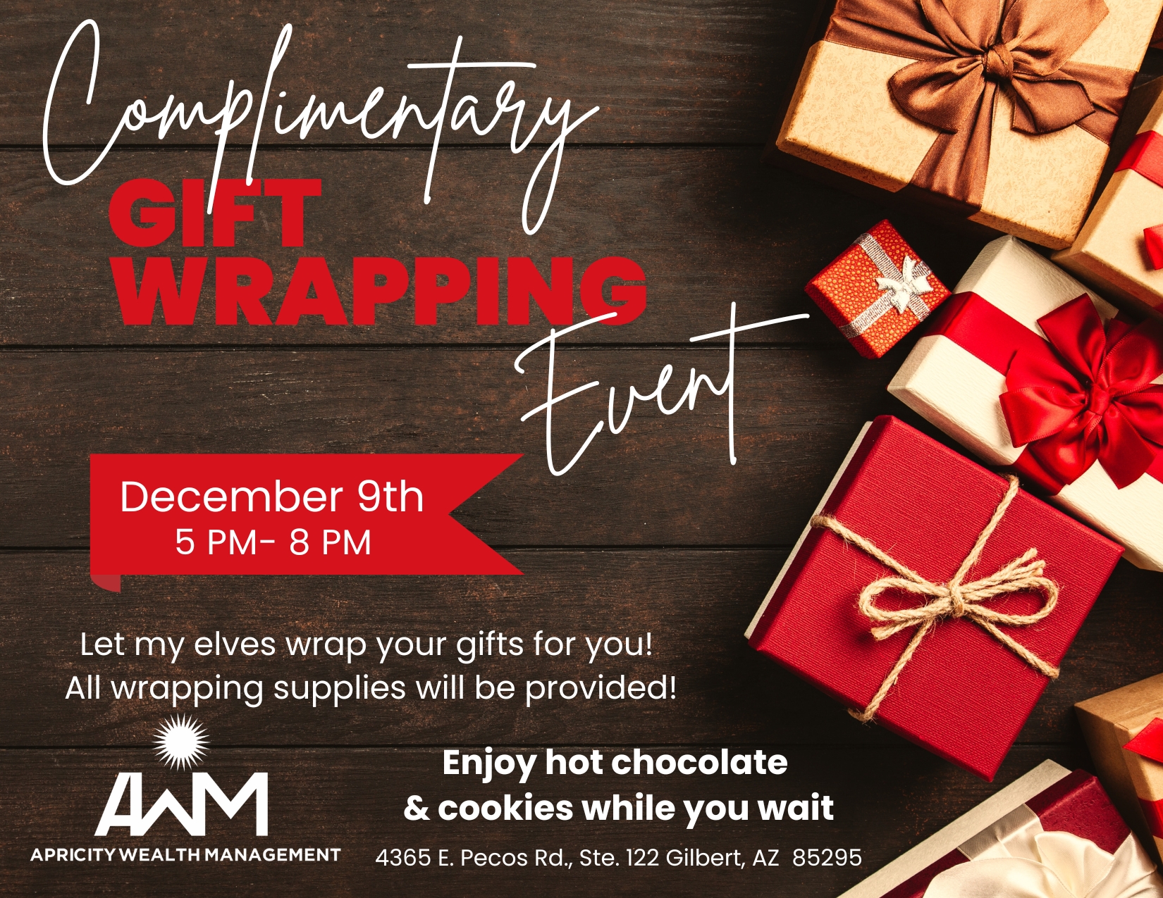 You can enjoy hot chocolate & goodies while my elves wrap your presents! All wrapping supplies will be provided!
